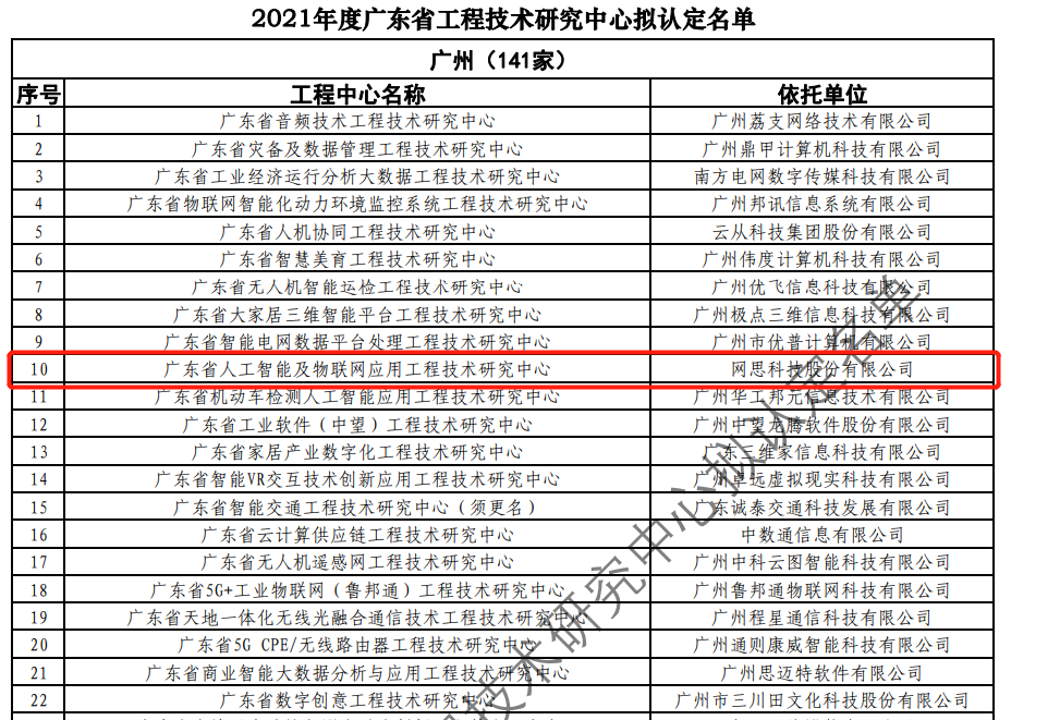 日前,广东省科技厅发布2021年度广东省工程技术研究中心名单。经过层层筛选、专家评审,依托世俱杯中国有限公司官网,世俱杯官方网站-建设的“广东省人工智能及物联网应用工程技术研究中心”榜上有名。广东省工程技术研究中心主要依托省内行业、领域具有科技实力的、拥有一定规模以上创新型企业建设,部分依托高校和科研院所组建。工程中心旨在
